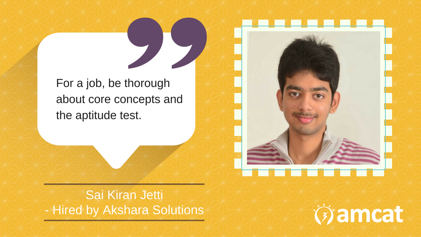 So, as he outlines his journey, Jetti stresses again on why good preparation and a decent performance on an aptitude test has put him on the career path which he aspires for. Thanking the AMCAT he lauded it for bringing the big companies directly to the freshers.